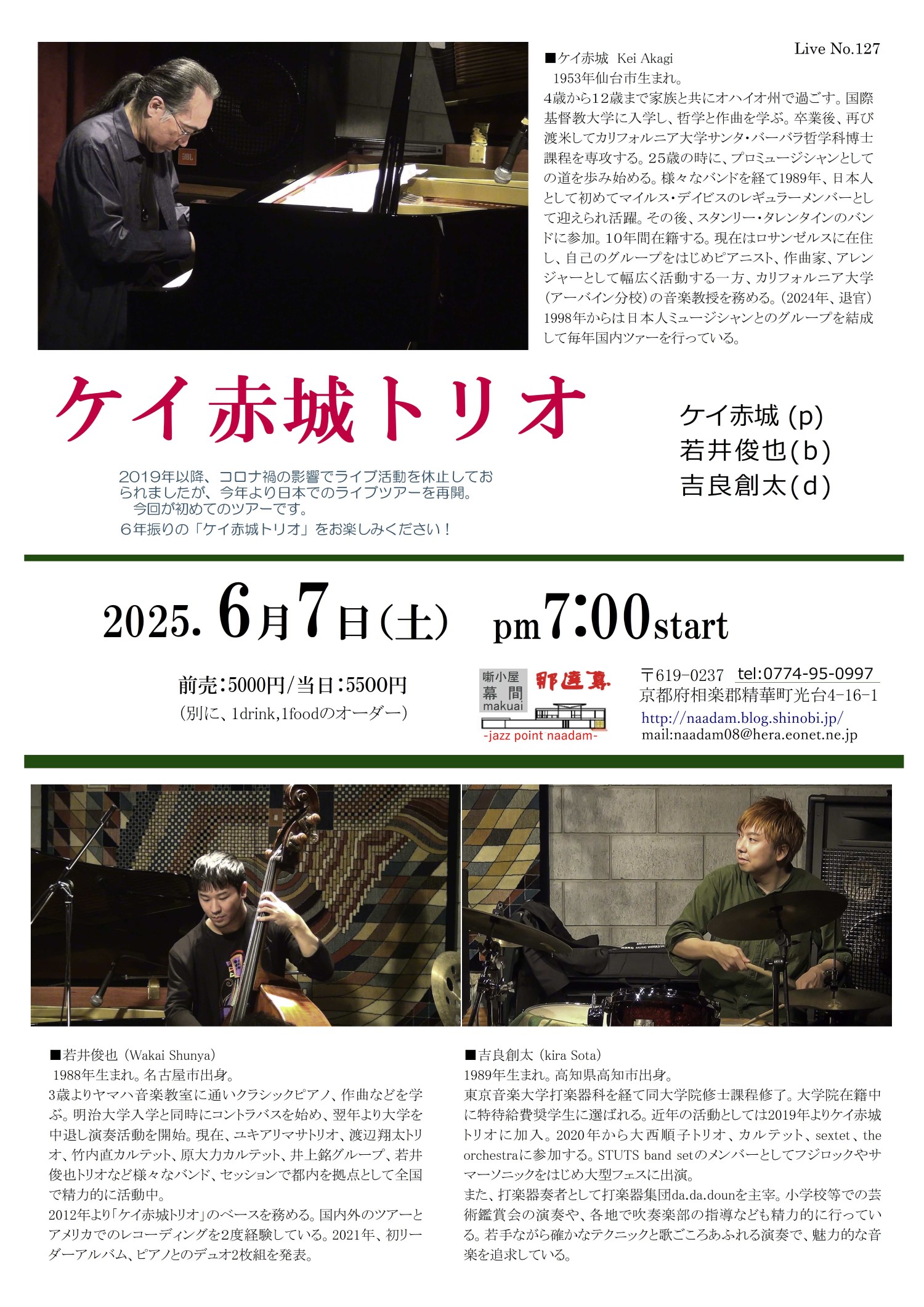 ホールでの「ケイ赤城トリオmeets 峰厚介・林栄一」の豪華版もありました。