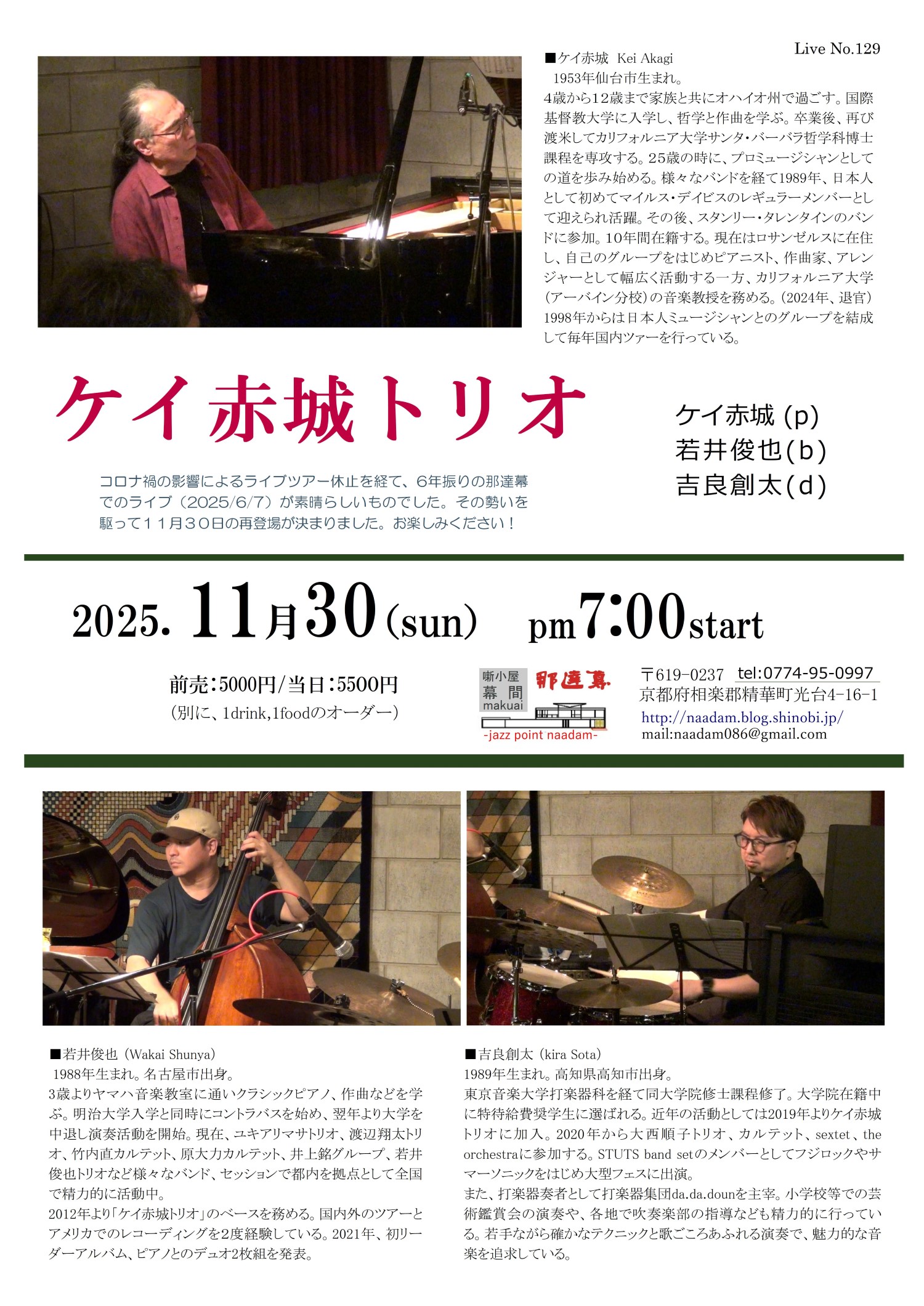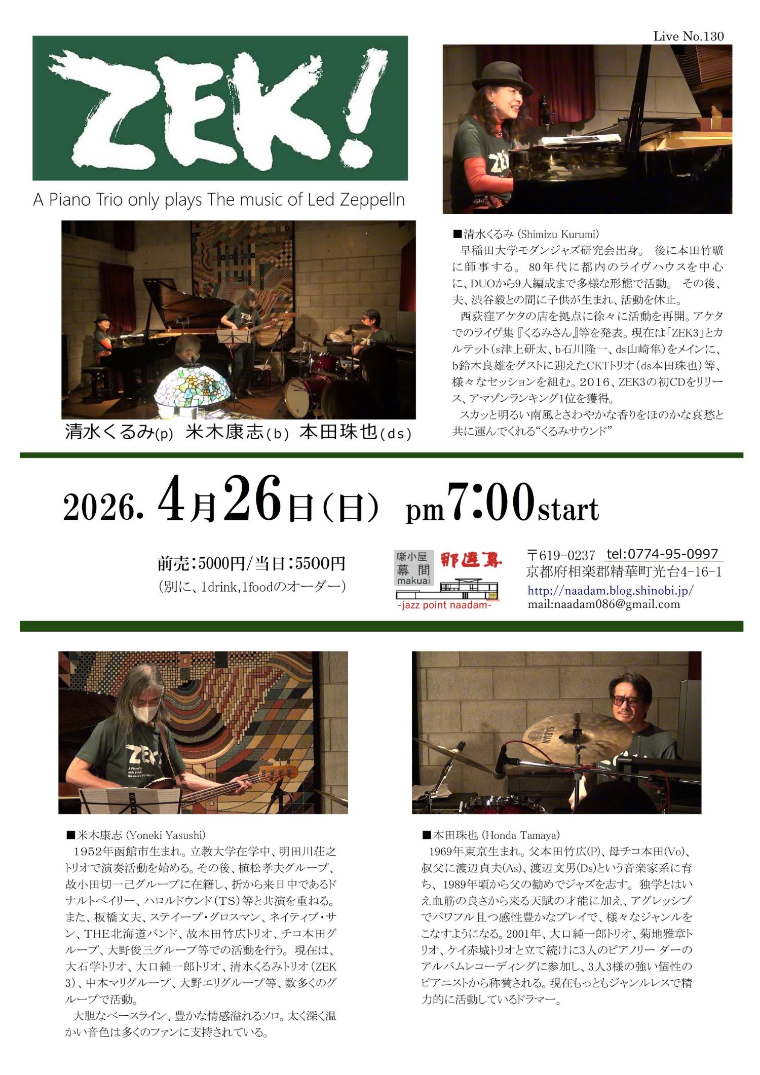 前売:4500円/当日:5000円