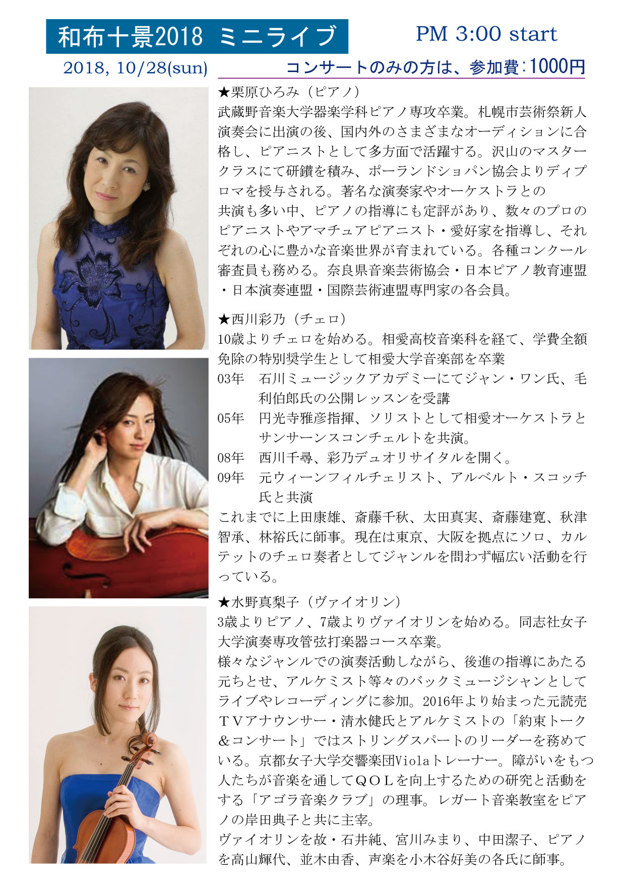※開演、1時以降の入場は出来ませんので、時間厳守願います。