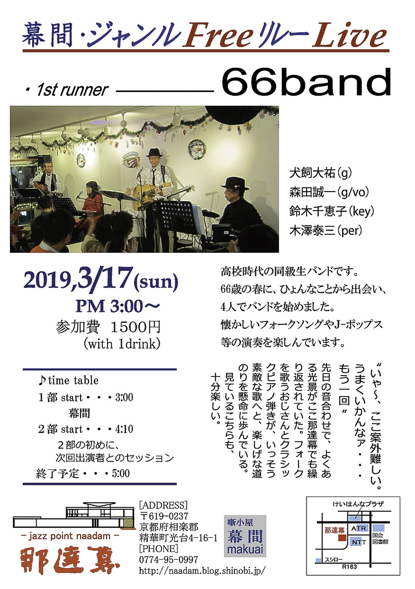 参加費:1500円(with 1drink)