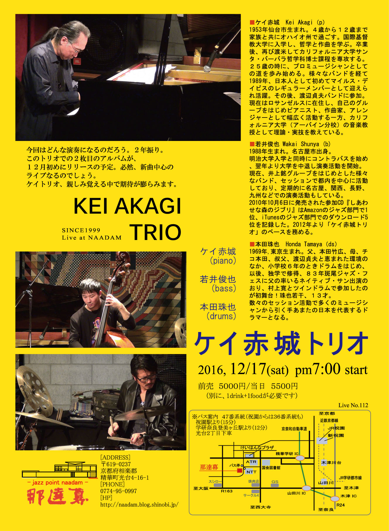 【出演者】・サックス/酒井康充・ギター/藤野恒二・ベース/西川サトシ