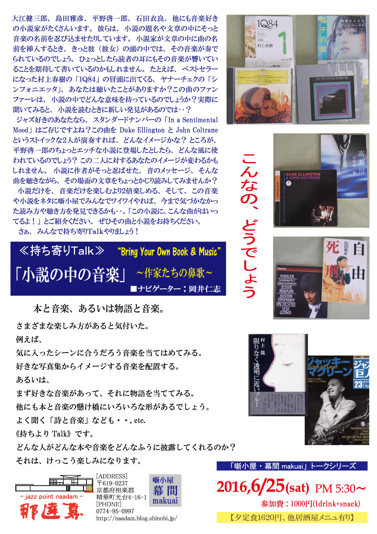 ★小説の中の音楽(音楽と本)、持ち寄りトーク