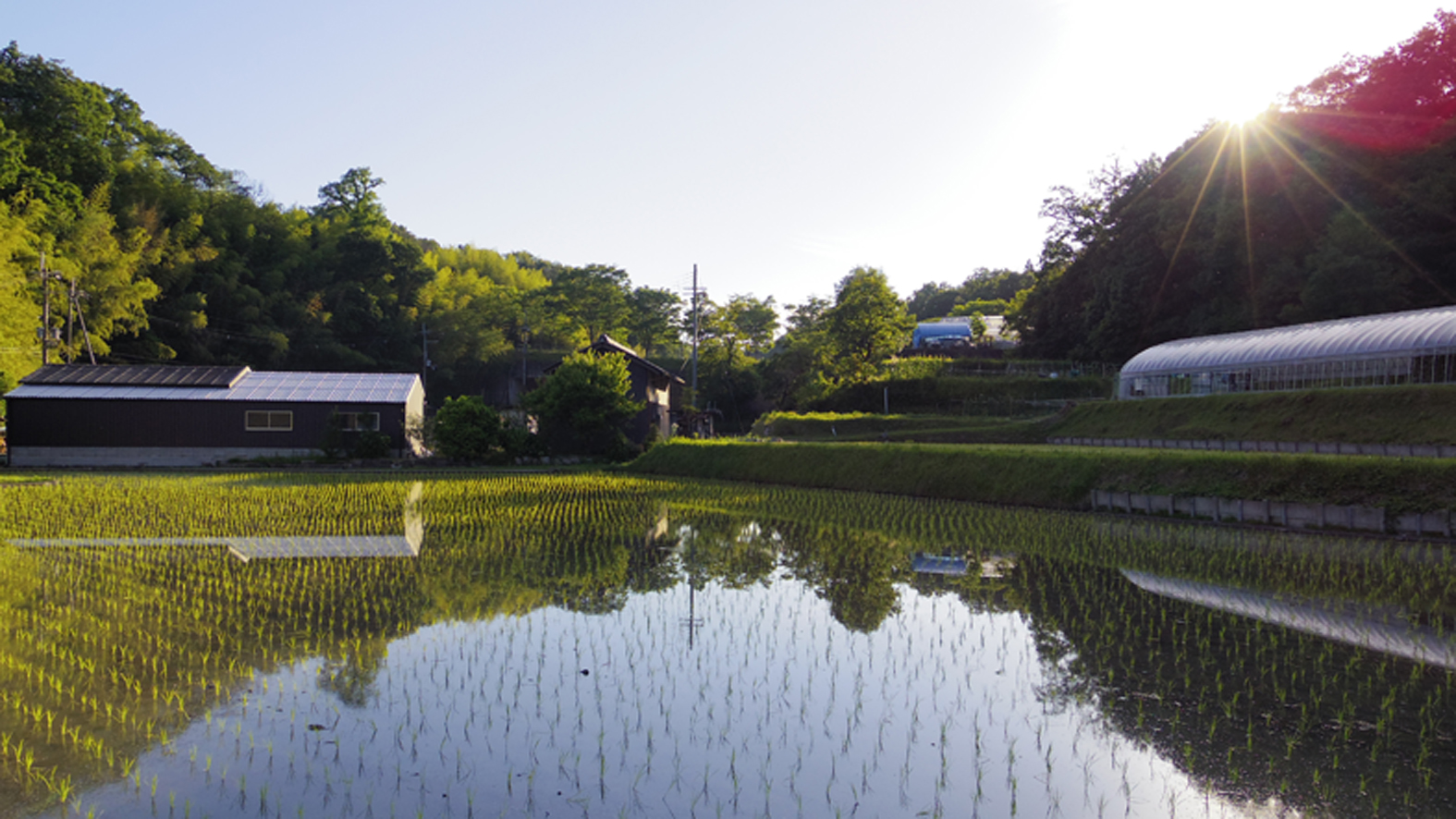 水田が空を映して青く爽やかな風情を与えてくれます。
