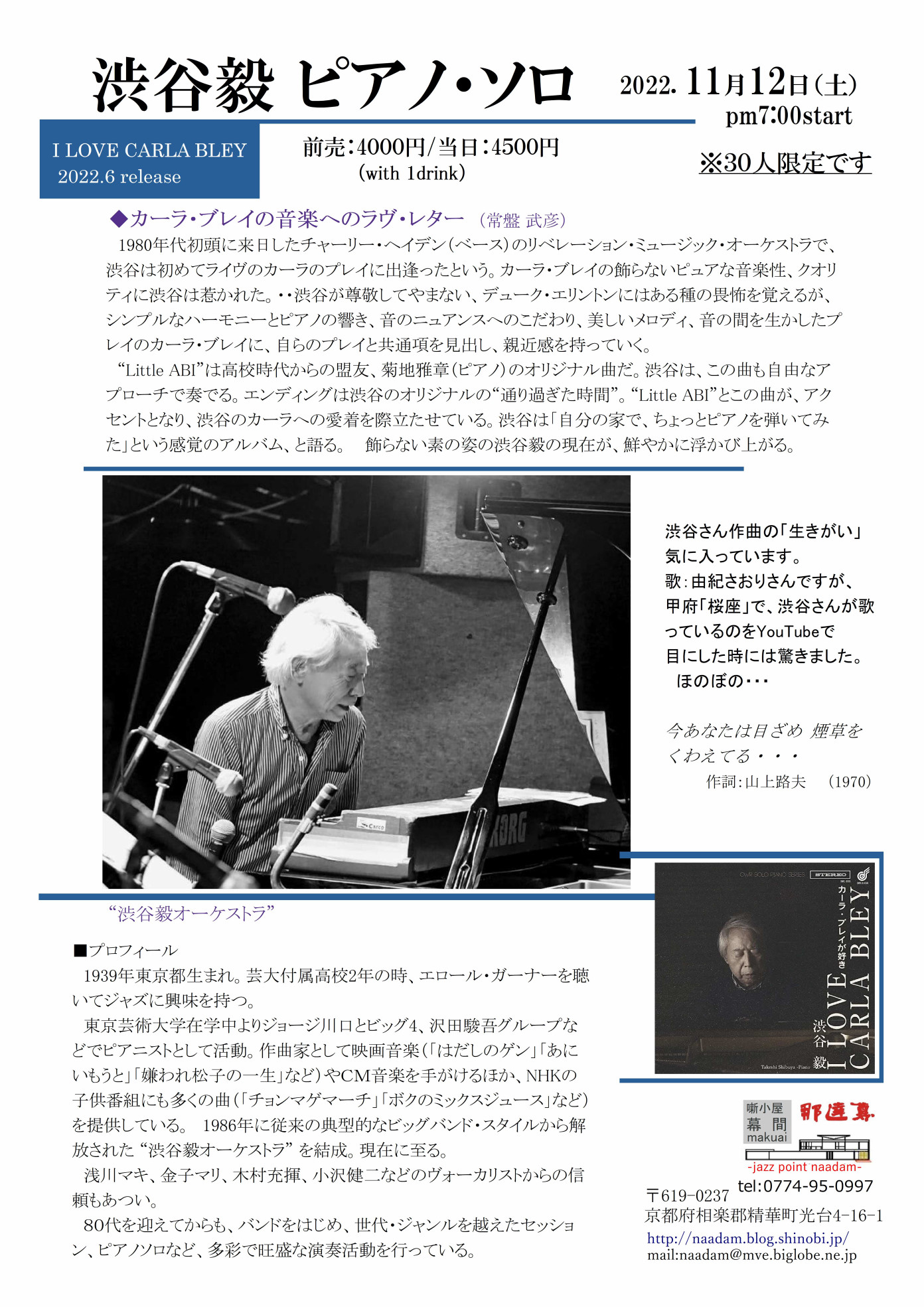 ピアノの柴田さんも、お久し振り、加わってくれてぃます。